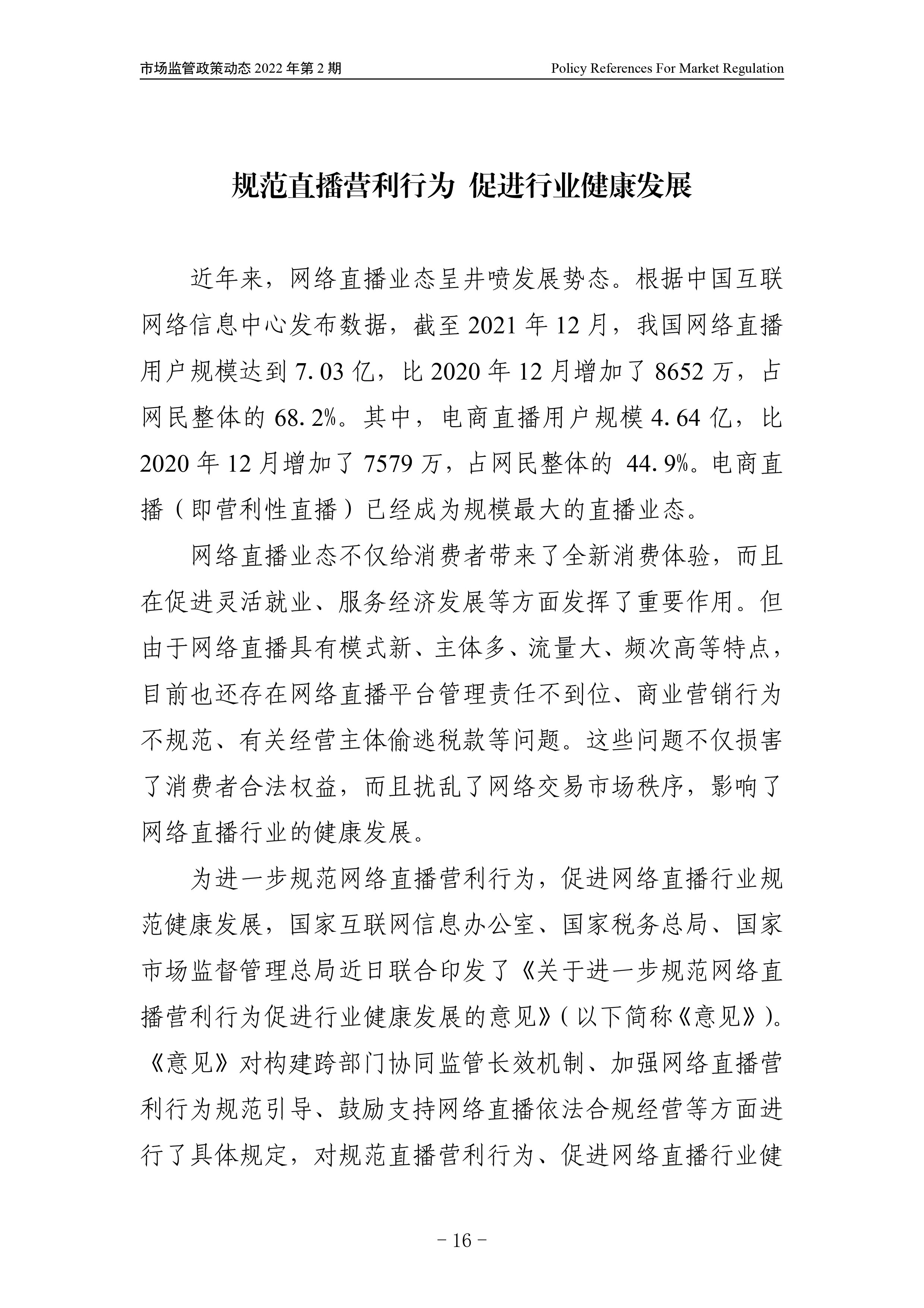 为进一步规范网络直播营利行为,促进网络直播行业规范健康发展,国家互联网信息办公室、国家税务总局、国家市场监督管理总局近日联合印发了《关于进一步规范网络直播营利行为促进行业健康发展的意见》(以下简称《意见》)。《意见》对构建跨部门协同监管长效机制、加强网络直播营利行为规范引导、鼓励支持网络直播依法合规经营等方面进行了具体规定,对规范直播营利行为、促进网络直播行业健康发展具有重要意义。